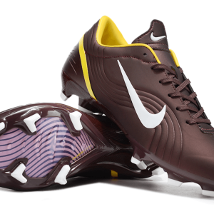 The Nike Ronaldo Air Cushion Series FG – Brown/Yellow Edition is a rare throwback to the golden era of speed and flair. Inspired by Ronaldo’s explosive early days, this boot blends timeless design with performance-enhancing technology. Its bold brown upper, crisp white Swoosh, and vibrant yellow accents give it an iconic retro finish—made for firm ground dominance and pitch-side envy.