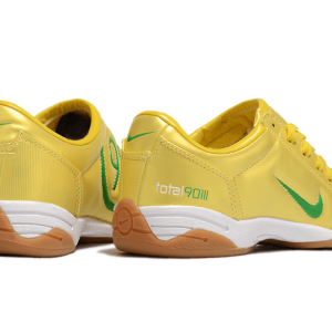 These turf boots pay tribute to Total 90’s golden age with a Brazil-inspired colorway that pops on any surface. They’re lightweight, grippy, and styled for street kings and futsal legends.