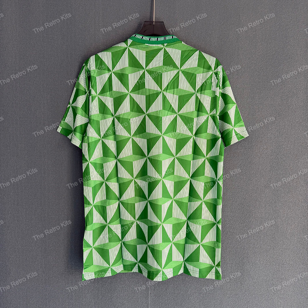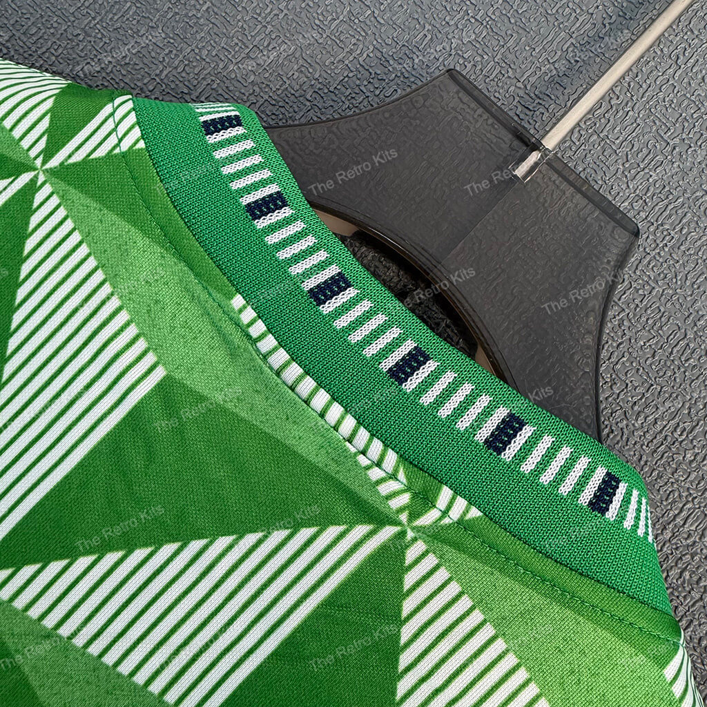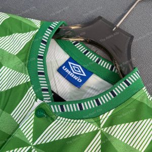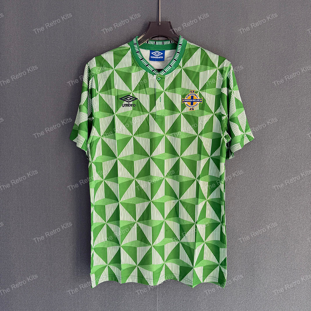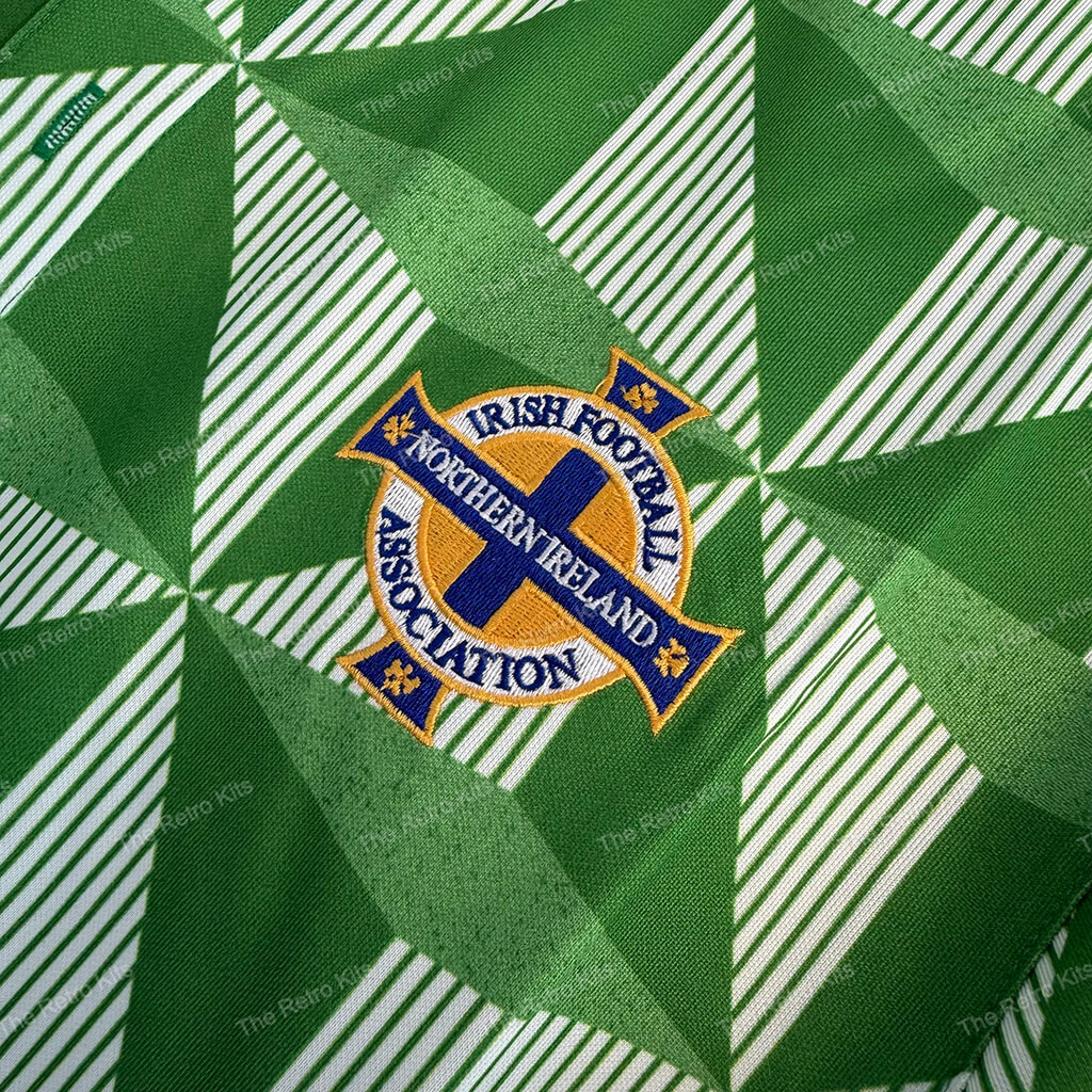 Worn by Jimmy Quinn, Mal Donaghy, and Norman Whiteside during the early stages of the UEFA Euro 1992 qualifying campaign, following their absence from the 1990 FIFA World Cup.