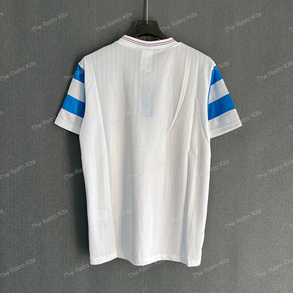 The 1999/2000 Marseille third shirt featured a striking black design with light blue details, paired with the Ericsson sponsor across the chest. Worn by players such as Robert Pirès, Laurent Blanc, and Christophe Dugarry, this kit represented Marseille during their Ligue 1 campaign and participation in European competition at the turn of the millennium.