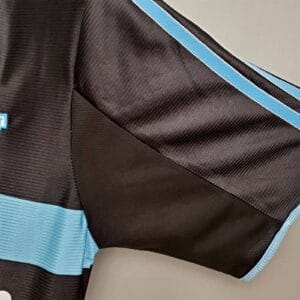 The 1999/2000 Marseille third shirt featured a striking black design with light blue details, paired with the Ericsson sponsor across the chest. Worn by players such as Robert Pirès, Laurent Blanc, and Christophe Dugarry, this kit represented Marseille during their Ligue 1 campaign and participation in European competition at the turn of the millennium.