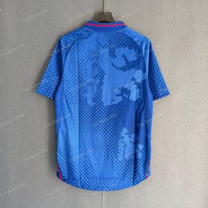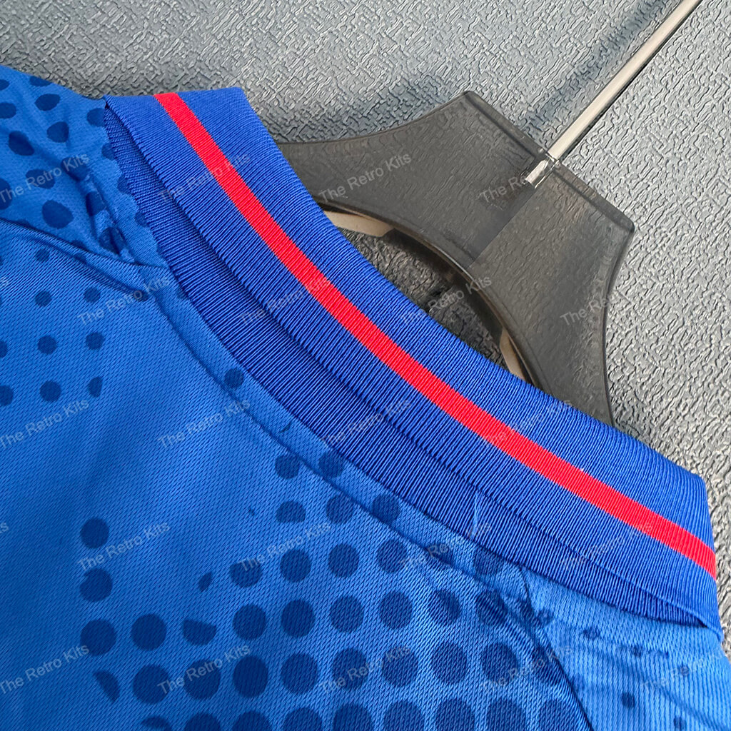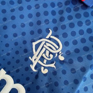The 2002/03 Rangers home shirt featured a clean royal blue design with red and white trim, paired with white shorts and black socks. It displayed the NTL sponsor across the chest alongside the club crest. Worn by stars such as Barry Ferguson, Ronald de Boer, and Shota Arveladze, this kit is remembered for the domestic treble-winning season, as Rangers claimed the Scottish Premier League, Scottish Cup, and League Cup titles.
