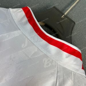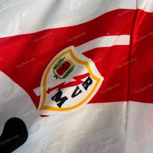 The 1994/95 Rayo Vallecano home shirt featured a white design with the trademark red diagonal sash, paired with the Canal+ sponsor across the chest. Worn by players such as Onésimo, José MarÃa Movilla, and Hugo Sánchez, this kit represented Rayo during their return to La Liga, as the club fought to establish themselves in Spain’s top flight.