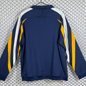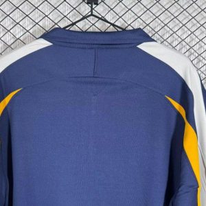 The 2012/13 Real Madrid white training suit featured a classic all-white design with turquoise detailing on the shoulders, sleeves, and logos, paired with matching white training pants. It carried the bwin sponsor across the chest alongside the club crest, keeping a sleek and modern look. Worn by players such as Cristiano Ronaldo, Mesut Özil, and Sergio Ramos during training sessions, this suit is remembered from the final season under José Mourinho, when Madrid won the Spanish Super Cup and reached the semi-finals of the UEFA Champions League.