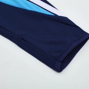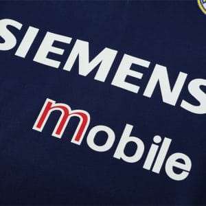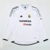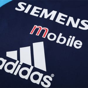 The 2003/04 Real Madrid royal blue training suit featured a deep blue base with white detailing on the shoulders and sleeves, paired with matching blue pants. It carried the Siemens Mobile sponsor across the chest alongside the club crest, creating a bold look that stood out during training. Worn by stars such as Zinedine Zidane, Ronaldo Nazário, and LuÃs Figo, this suit reflected the glamour of the Galácticos era, even in a season where Madrid’s campaign ended trophyless but packed with international star power.