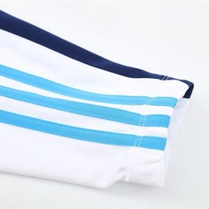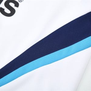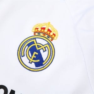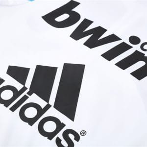 The 2009/10 Real Madrid white training suit featured a classic all-white design with navy detailing on the shoulders and sleeves, paired with white training pants. It also carried the bwin.com sponsor across the chest with the club crest. Worn by stars such as Cristiano Ronaldo, Iker Casillas, and Xabi Alonso, this suit became part of Ronaldo’s debut season at the Bernabéu, remembered for his 33 goals as Madrid finished second in La Liga with a then-record points tally.