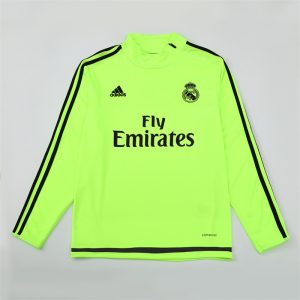 The 2015/16 Real Madrid fluorescent green training suit featured a bright neon green design with black detailing on the shoulders and sleeves, paired with matching training pants. It carried the Fly Emirates sponsor across the chest alongside the club crest, making it one of the most eye-catching training outfits of the era. Worn by players such as Cristiano Ronaldo, Karim Benzema, and Gareth Bale during training sessions, this suit is remembered from a season where Real Madrid, under Zinedine Zidane, lifted the UEFA Champions League in Milan to claim their 11th European crown, “La Undécima.”