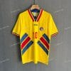 Worn by Gheorghe Hagi, Ioan Sabău, and Miodrag Belodedici during their return to the FIFA World Cup stage in Italy, advancing to the Round of 16 and marking a new era for Romanian football.