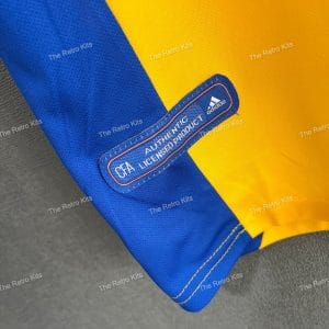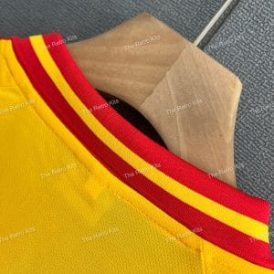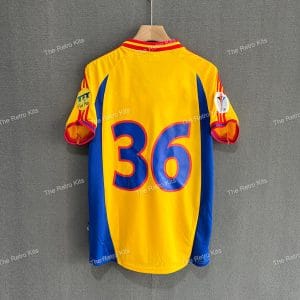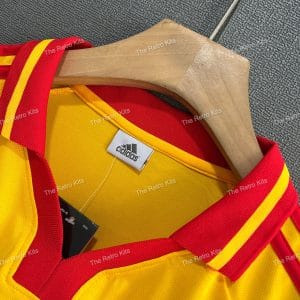Worn by Gheorghe Hagi, Ioan Sabău, and Miodrag Belodedici during their return to the FIFA World Cup stage in Italy, advancing to the Round of 16 and marking a new era for Romanian football.