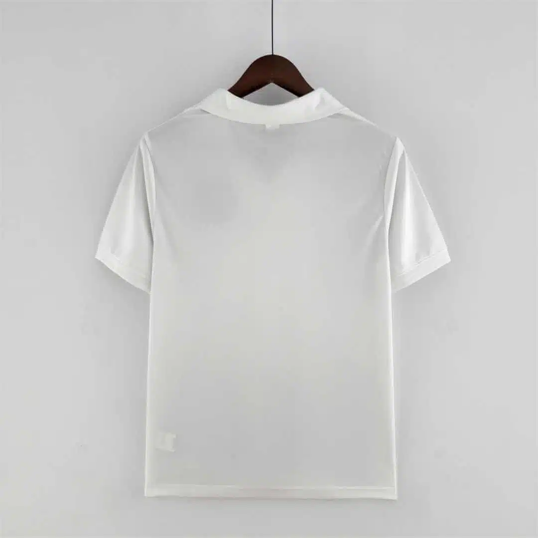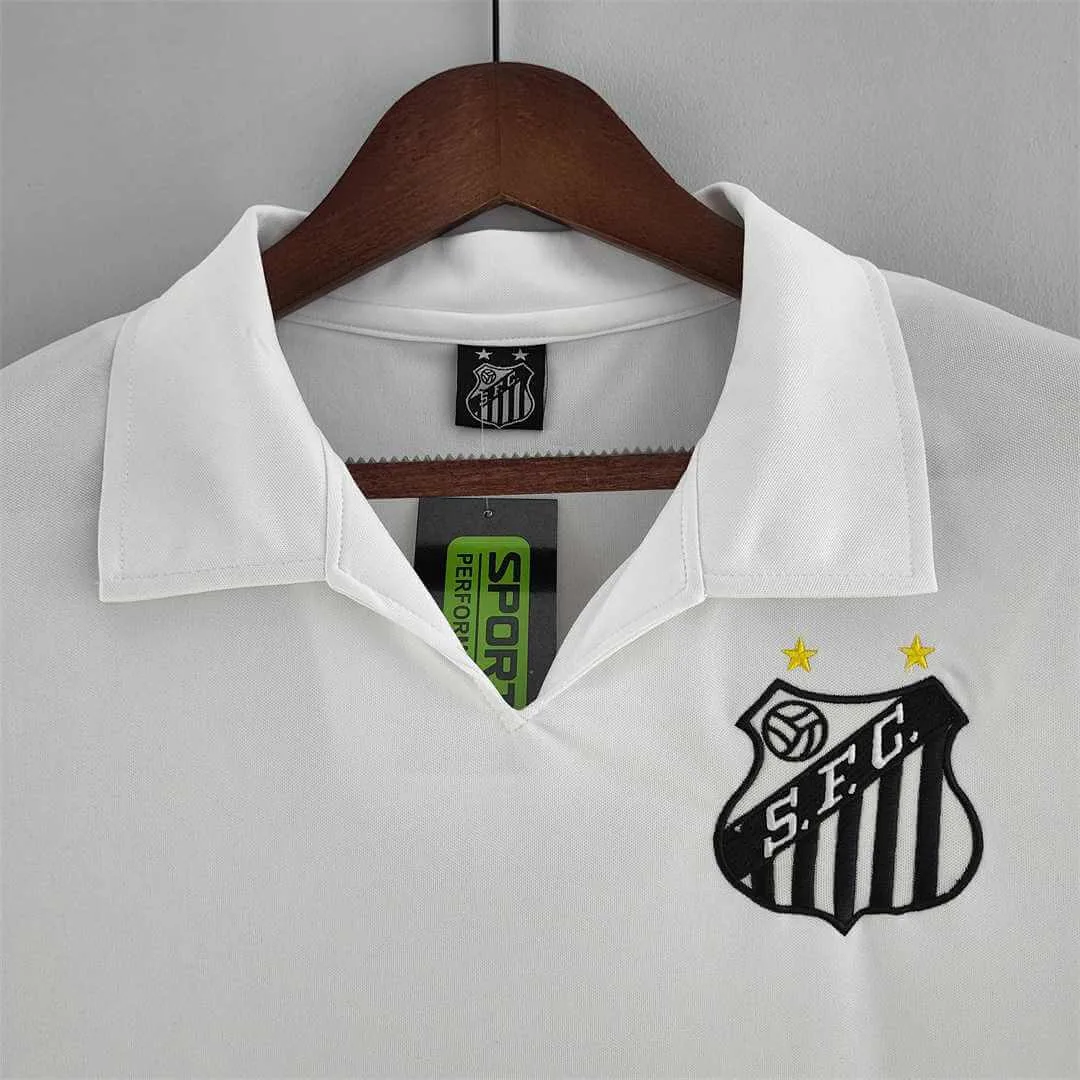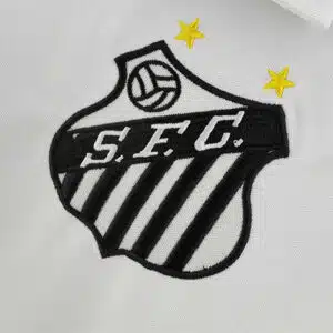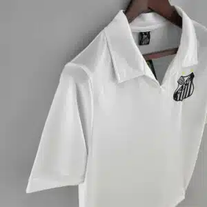 The 1970 Santos FC away shirt featured the club’s classic black-and-white vertical stripes, paired with black shorts and white socks. Free of any sponsor, it highlighted the purity of football from that golden era. Worn by legends such as Pelé, Clodoaldo, and Carlos Alberto Torres, this kit represented Santos at the peak of its global fame — elegant, iconic, and synonymous with the beautiful game.