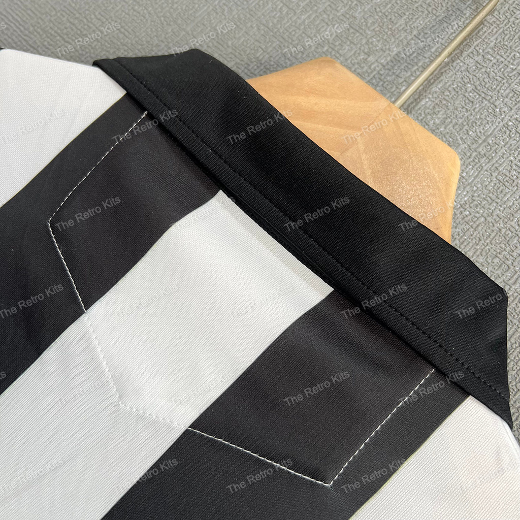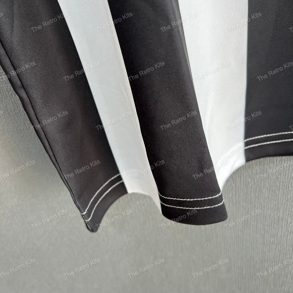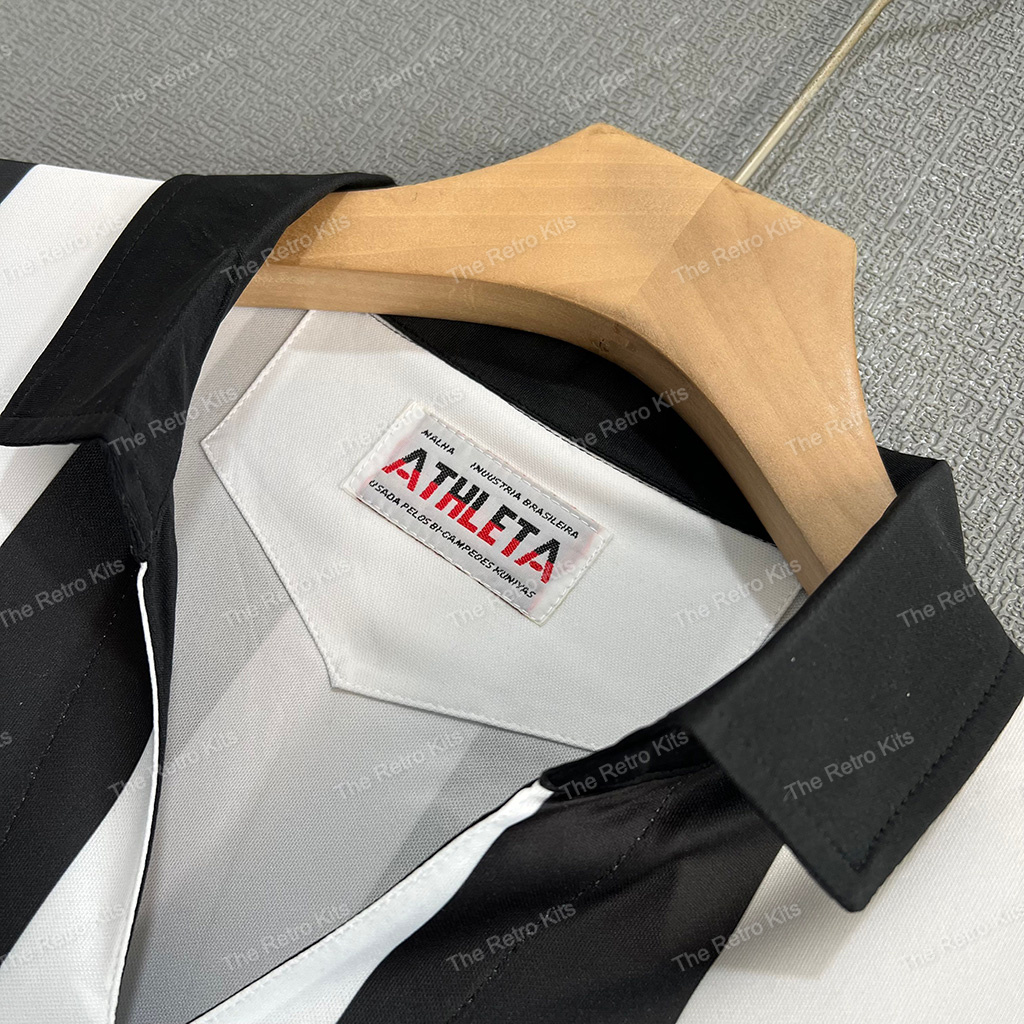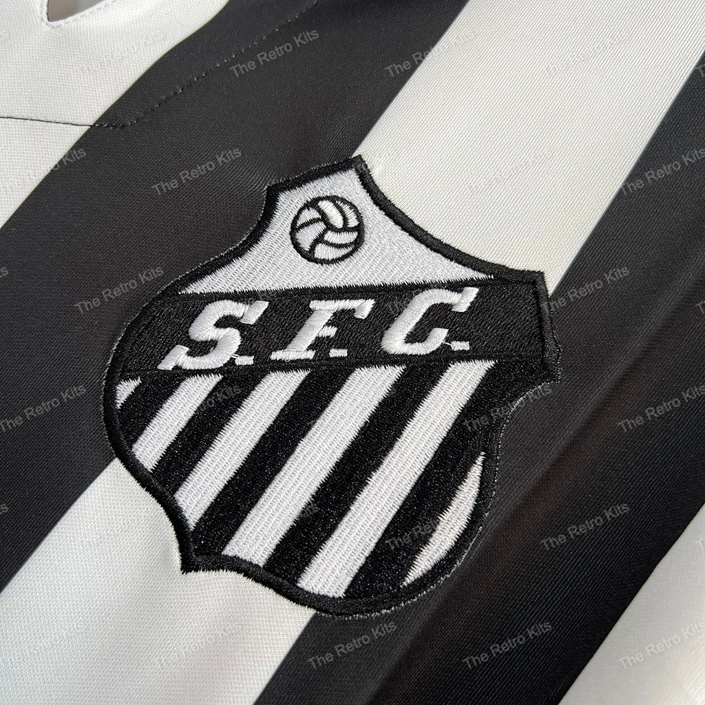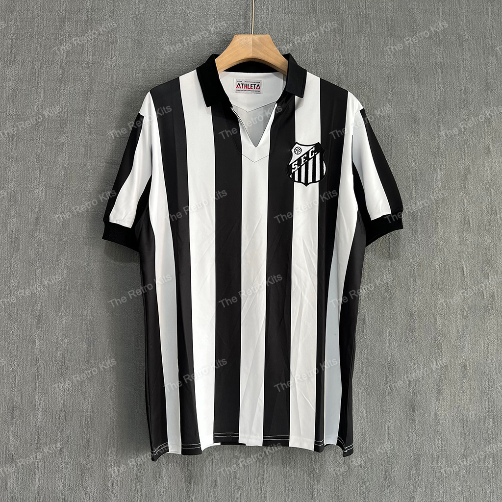 The 1978 Santos away shirt featured a classic black-and-white striped design, paired with black shorts and white socks. Free of a sponsor, it highlighted the club’s iconic identity and timeless simplicity. Worn by stars such as João Paulo and Pita, this kit represented Santos during a traditional yet competitive era in Brazilian football, showcasing the club’s deep-rooted elegance and pride.