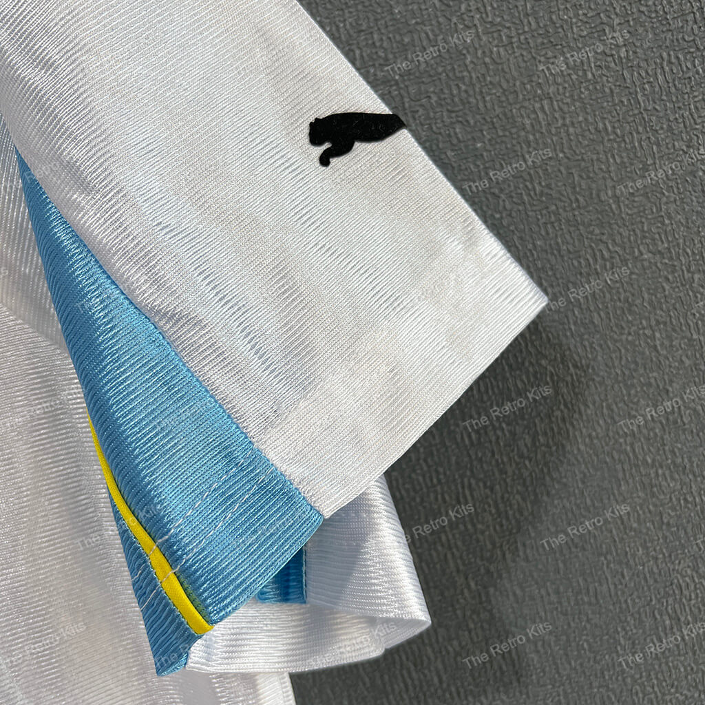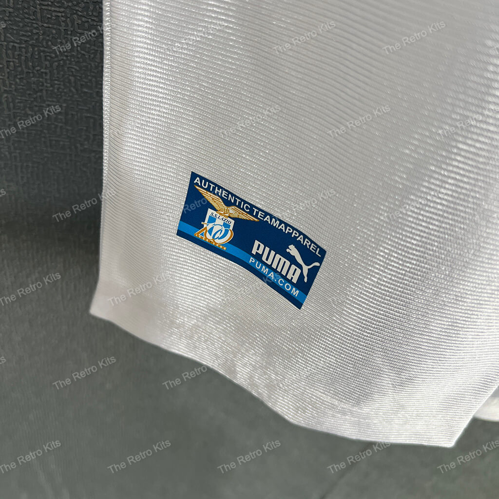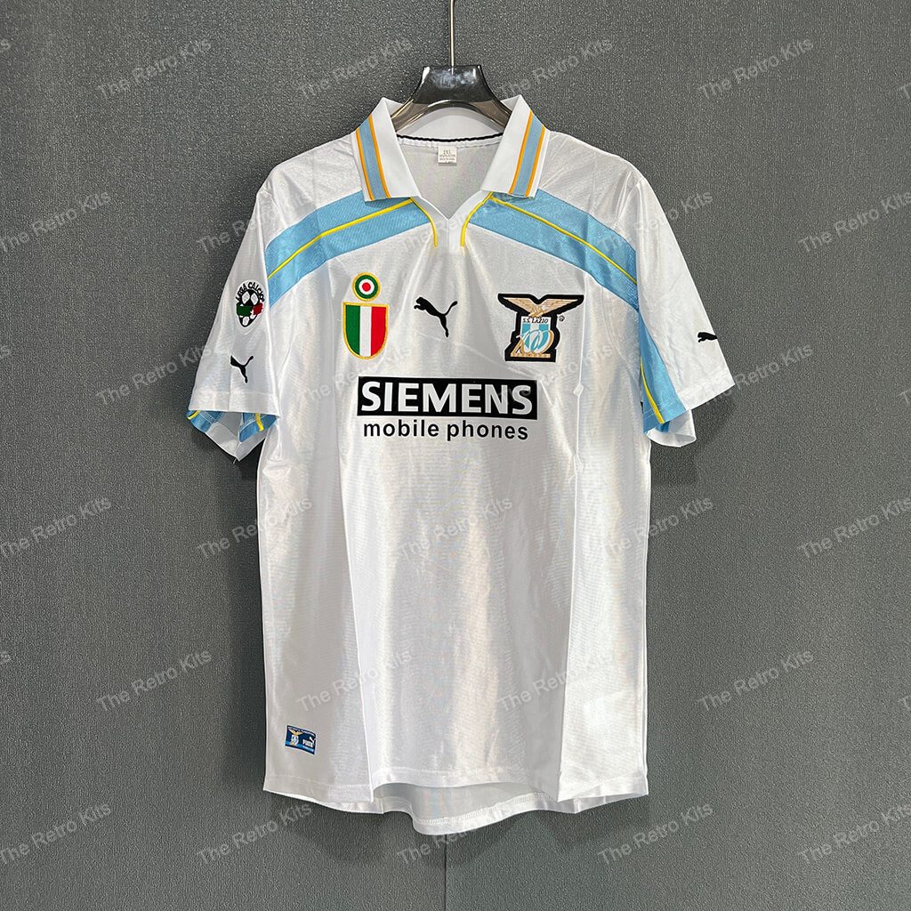The 2000/2001 SS Lazio Centenary home shirt featured a sky blue design with white shoulders and detailing, celebrating the club’s 100th anniversary. It carried the Siemens Mobile sponsor across the chest alongside the gold-stitched Lazio crest and a special centenary emblem to mark the milestone. Paired with white shorts and sky blue socks, the kit combined tradition and elegance. Worn by legends such as Alessandro Nesta, Pavel Nedvěd, and Juan Sebastián Verón, this shirt remains one of Lazio’s most iconic designs, symbolizing pride, history, and the legacy of the Biancocelesti.