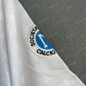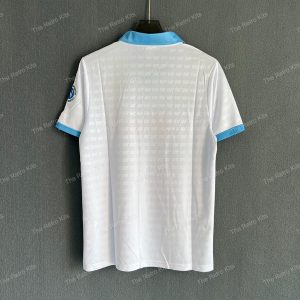 The 1990/91 Napoli away shirt featured a clean all-white design with light blue details, proudly displaying the iconic Mars sponsor across the chest. Worn by legends like Diego Maradona and Careca, this kit was part of Napoli’s defense of their Serie A title and their campaign in the European Cup.