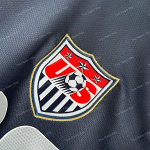 The 2010 USA away shirt featured a navy blue design with a bold diagonal white sash across the front, paired with navy shorts and socks. The US Soccer crest sat on the chest, completing the look. Worn by players such as Landon Donovan, Clint Dempsey, and Tim Howard, this kit became iconic at the 2010 FIFA World Cup in South Africa, most memorably during the dramatic 1–0 victory over Algeria when Donovan scored the stoppage-time goal that sent the USA into the knockout stage.