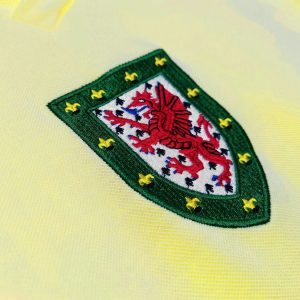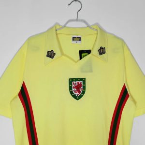 Worn by John Toshack, Mickey Thomas, and Leighton James during the Euro 1976 qualifying campaign under Admiral’s bold design era.