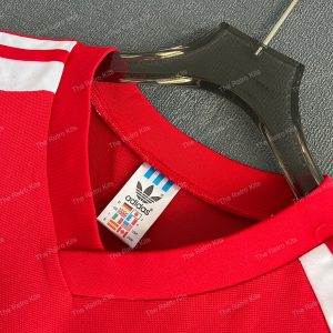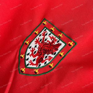 The 1980 Wales home shirt featured a classic red design with green and white trim running down the sleeves, paired with white shorts and red socks. The simple round-neck collar and bold colours reflected the national identity, with the FAW dragon crest proudly displayed on the chest. Worn by players such as Ian Rush, Mickey Thomas, and Joey Jones, this kit represented Wales during their 1982 World Cup qualifying campaign, a period of near misses but memorable performances.