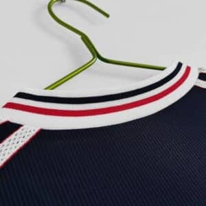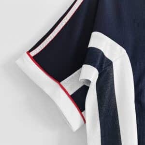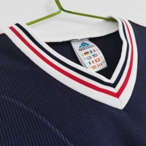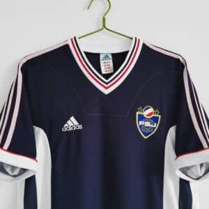 The 1998 Yugoslavia home shirt featured a deep royal blue base with bold white side panels and red trim, paired with white shorts and blue socks. It displayed the Kappa logo and the national crest, introducing a modern, athletic design for the 1998 FIFA World Cup in France. Worn by stars such as Predrag Mijatović, Dejan Stanković, and Siniša Mihajlović, this kit became an instant classic as Yugoslavia advanced to the Round of 16, representing both style and strength.